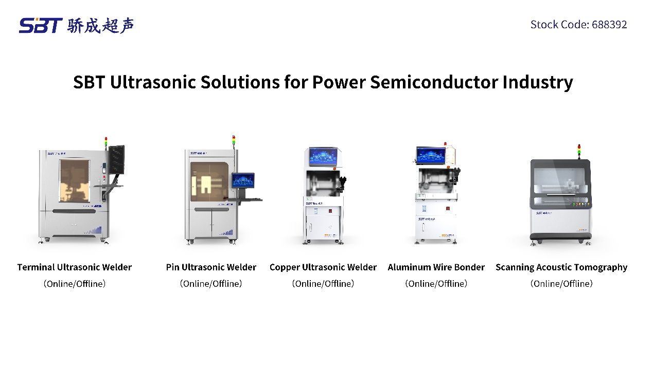Amidst increasingly fierce market competition, packaging manufacturers hope to improve efficiency and profitability through cost reduction and efficiency enhancement, significantly increasing the domestic procurement rate of equipment. SBT is closely following market demand and has introduced a series of products in the semiconductor industry, including ultrasonic bonders (copper/aluminum wire), ultrasonic terminal welders, pin ultrasonic welders, and ultrasonic scanning microscopes (SAT). Some models have already received formal orders from industry-leading customers.