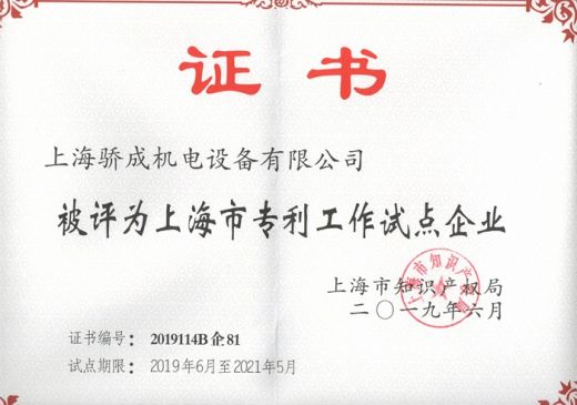 上海驕成榮獲“上海市專(zhuān)利工作試點(diǎn)企業(yè)”稱(chēng)號(hào)