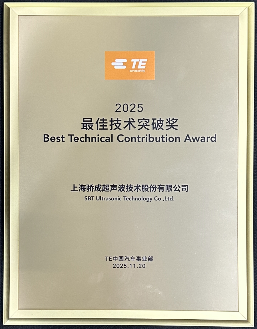 近日,2025年TE中國(guó)汽車事業(yè)部供應(yīng)商大會(huì)圓滿舉辦(TE Connectivity泰科電子,以下簡(jiǎn)稱“TE”)。驕成超聲(股票代碼:688392)憑借在低壓鋁線超聲波高速焊接技術(shù)領(lǐng)域的突破性創(chuàng)新,成功斬獲“最佳技術(shù)突破獎(jiǎng)”。公司董事、副總經(jīng)理段忠福先生受邀出席大會(huì),代表企業(yè)領(lǐng)取榮譽(yù)。