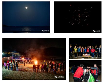 晚上燒烤,篝火狂歡,生日派對(duì),啦啦啦~~~海邊涼風(fēng)習(xí)習(xí),圓月高掛,小伙伴們圍著篝火跟隨教練盡情的吶喊狂歡!歡樂(lè)一浪高過(guò)一浪!