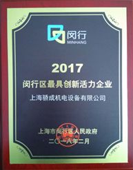 上海驕成獲得上海市閔行區(qū)2017年度“最具創(chuàng)新活力企業(yè)”稱號。