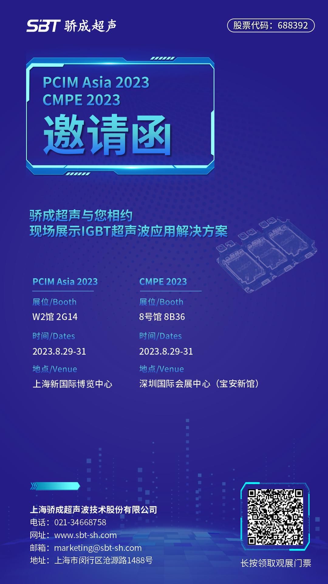 8月29-31日,上海國際電力元件、可再生能源管理展覽會(PCIM Asia 2023)與第五屆精密陶瓷暨IGBT產(chǎn)業(yè)鏈展覽會(CMPE 2023)將分別在上海新國際博覽中心、深圳國際會展中心舉辦。屆時,驕成超聲將攜功率半導(dǎo)體超聲波應(yīng)用解決方案分別亮相,分享行業(yè)洞察與熱點產(chǎn)品,歡迎各界新老朋友蒞臨驕成超聲展位參觀指導(dǎo)!